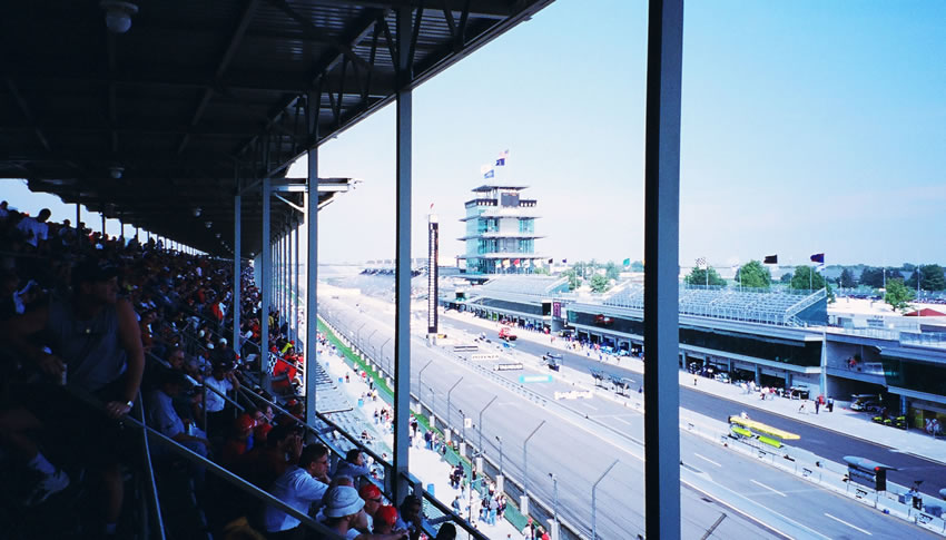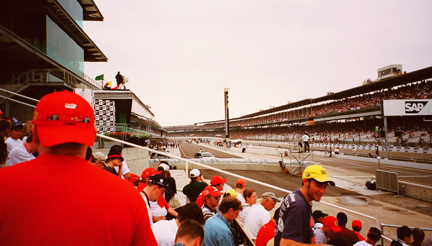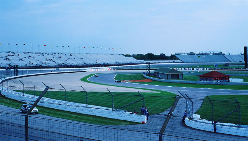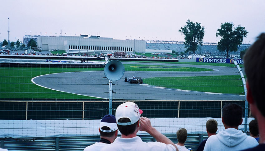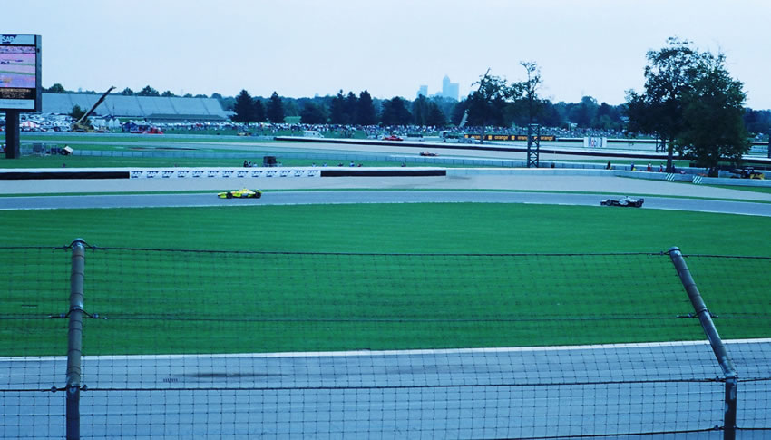 The cars as seen from section J. Probably the best views at Indy.