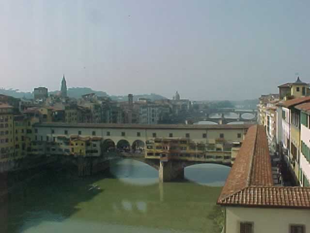 Looking over the Arno from the Uffizi. The first bridge is the Ponte Vecchio. |