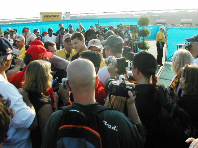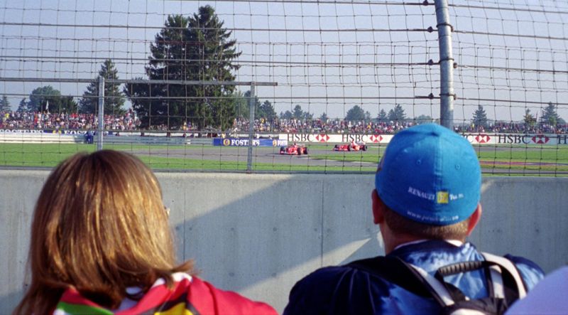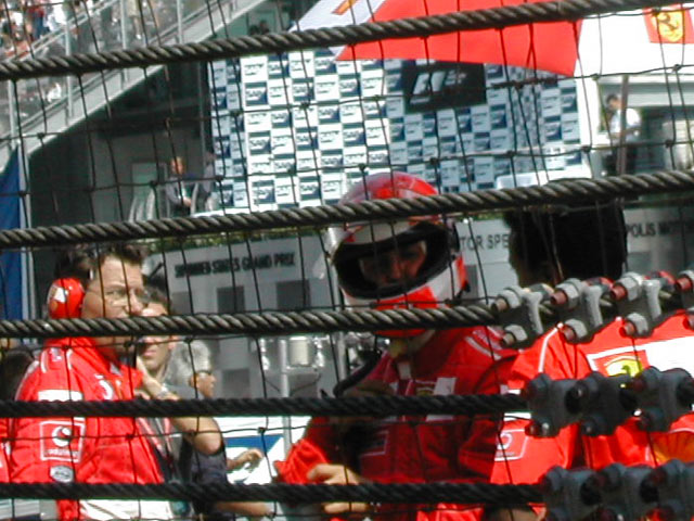 The podium ceremony of the strange finish to the race where Michael let Ruebens by for the flag after dominating the whole weekend.