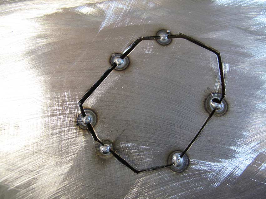 A few weld tacks one of which blew through.