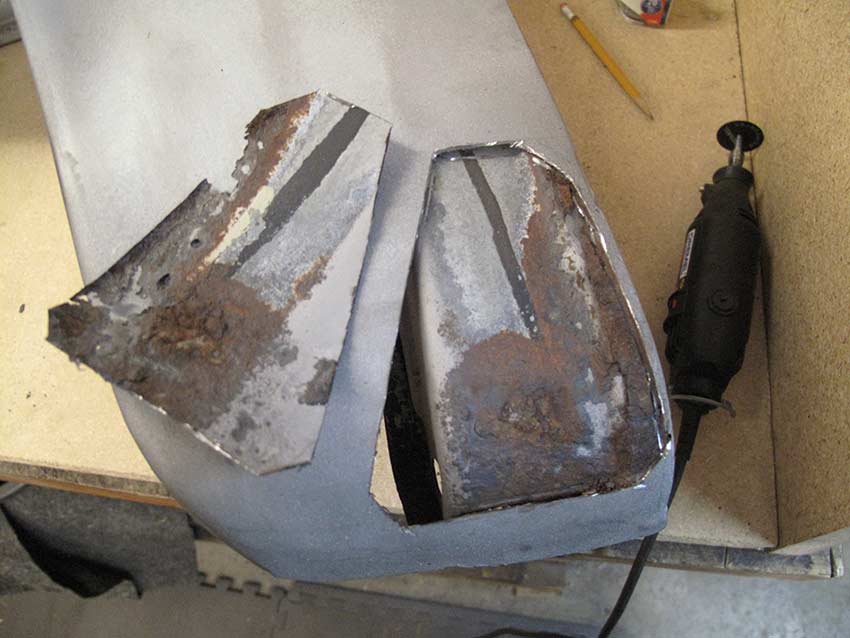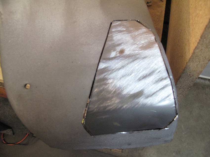 Using the cut out piece as a template I cut the replacement from the donor fender.