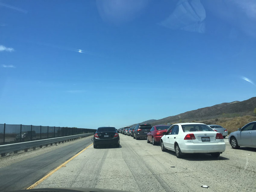 Driving to the car, stuck in a traffic jam of course.