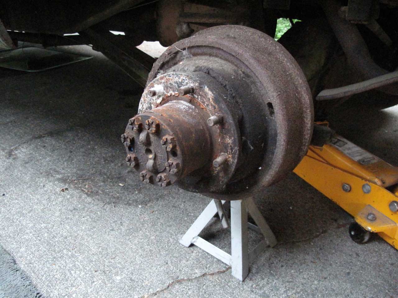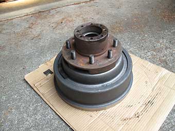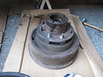 Got the brake drum off, its a heavy beast and I need to check the bearings and oil seal.