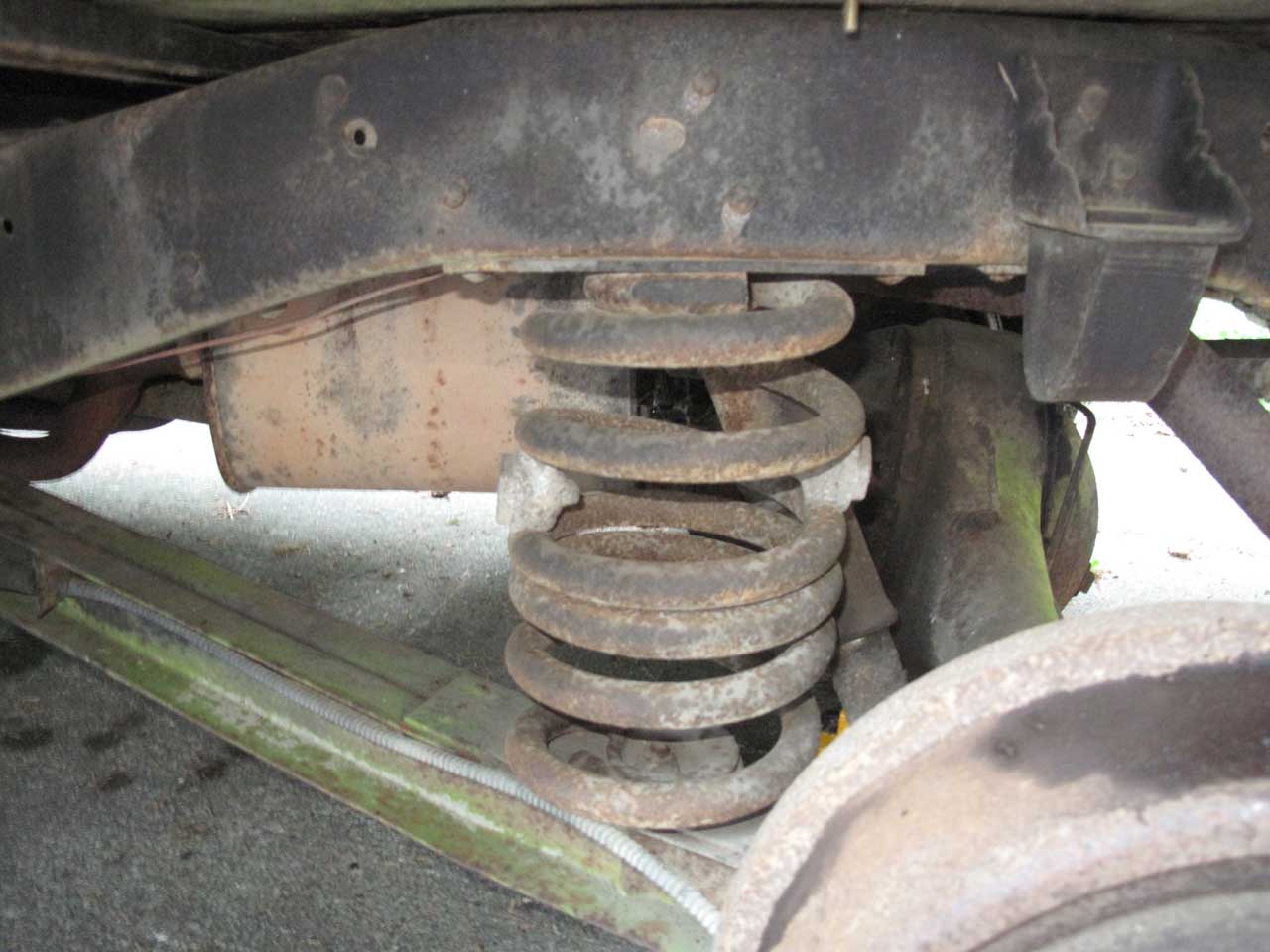 The springs have some sort of JC Whitney spacers on them. Neat.