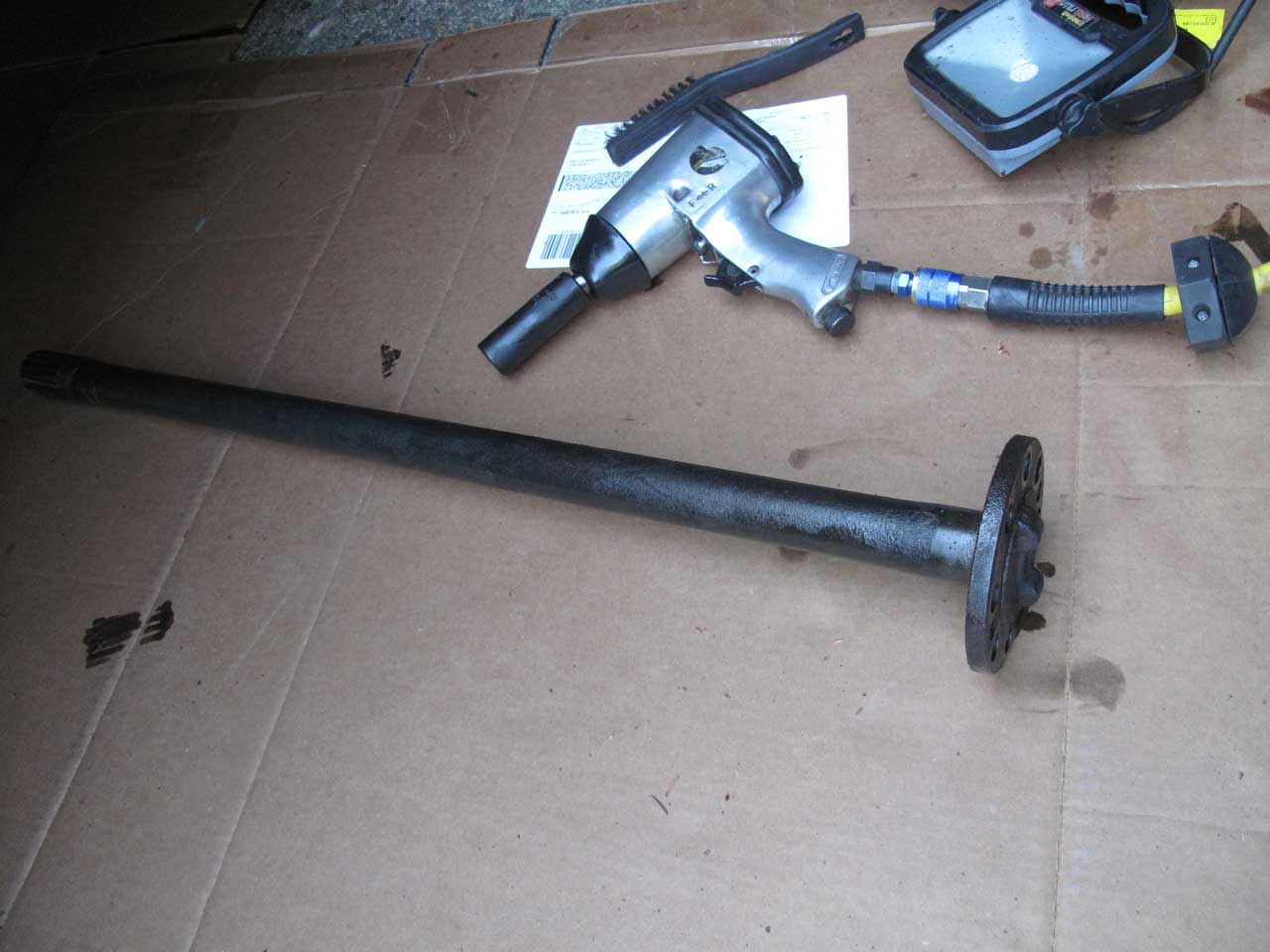Here is the axle shaft you have to remove to get the brake drum off.
