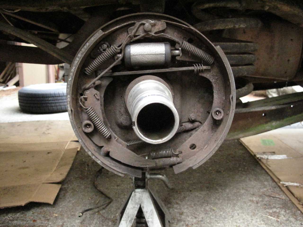 Got the new brake cylinder installed and shoes back in for the right side.