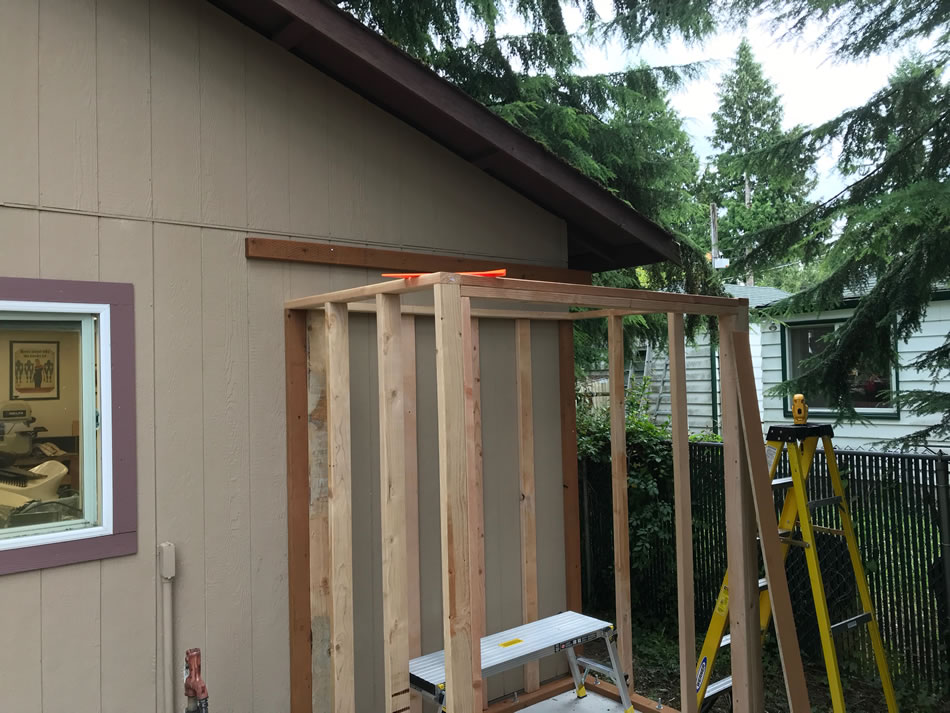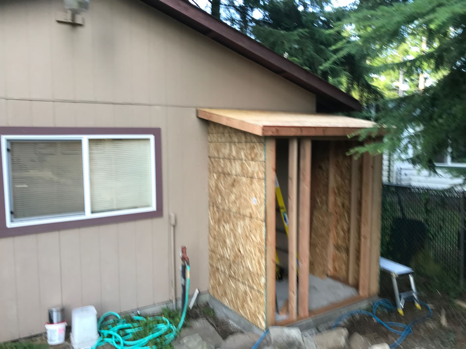 Pitched the roof so its just under the z-flashing on the garage so I can tuck the shed flashing under the z-flashing.