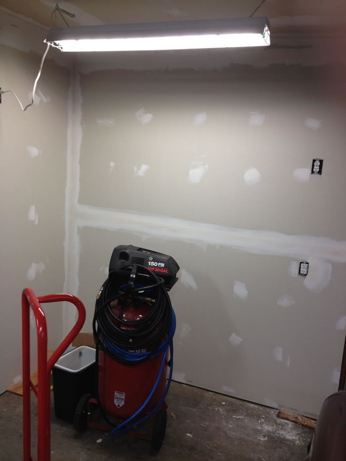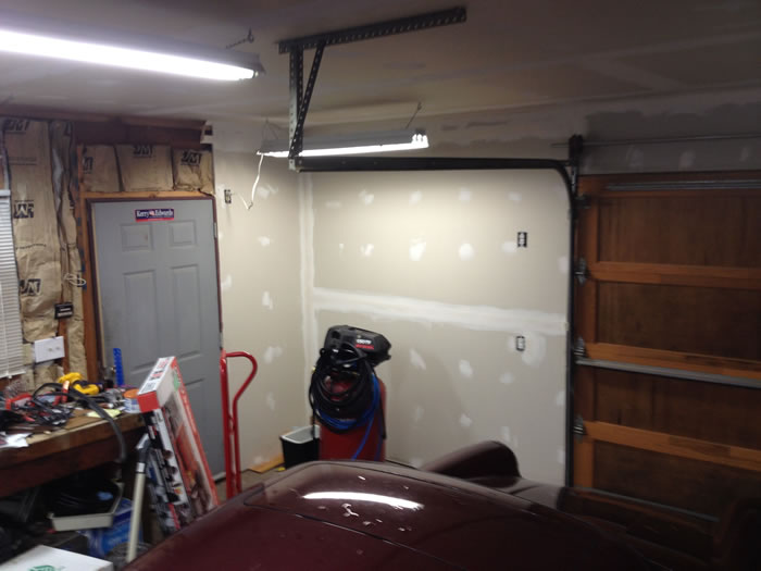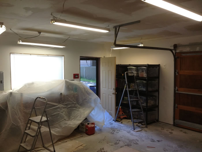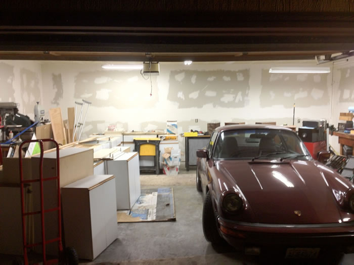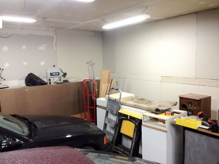 All the sheet rock up and cars back in the garage.